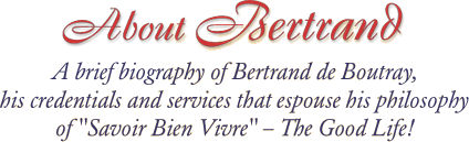 In 1995, I decided to achieve three personal dreams: to become an American citizen, start my own business, and do something I really love. I knew that food was a passion for me, but knew I did not want to go into the restaurant business. Instead, I attended the prestigious cooking school, the Cordon Bleu of Paris, and started Bertrand Chez Vous. My goal was to share what the French are good at when it comes to food. For the French, food is always an excuse to stop the clock, gather some friends and enjoy the present moment. I started to teach cooking classes that focused on traditional French classical cuisine. I came up with a concept I called "Cooking Together Parties" where the guests are involved in both the preparation and cooking of the menu. I described it as a social culinary experience. Finally, I wanted to take my approach a step further by organizing culinary trips to France where it is all about enjoying the unique French lifestyle.